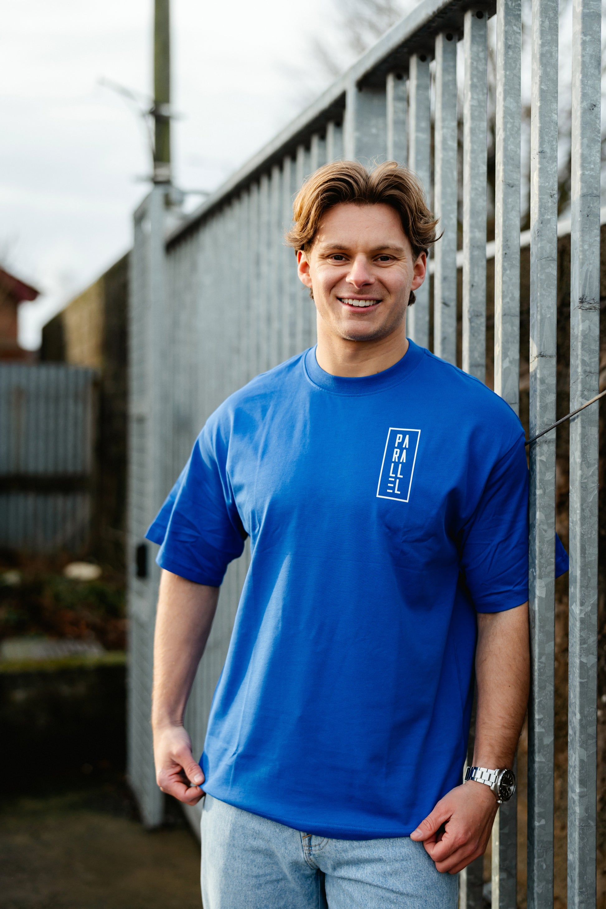 The ‘Parallel Logo’ Tee pays tribute to our very first T-shirt, carrying the same iconic logo with an improved, modern fit. Designed with an oversized silhouette and extended sleeves, this cobalt-blue piece stands out with a crisp white Parallel Logo across the chest and a bold parallel symbol graphic on the back. Crafted from heavyweight cotton, it delivers a durable, premium feel.
