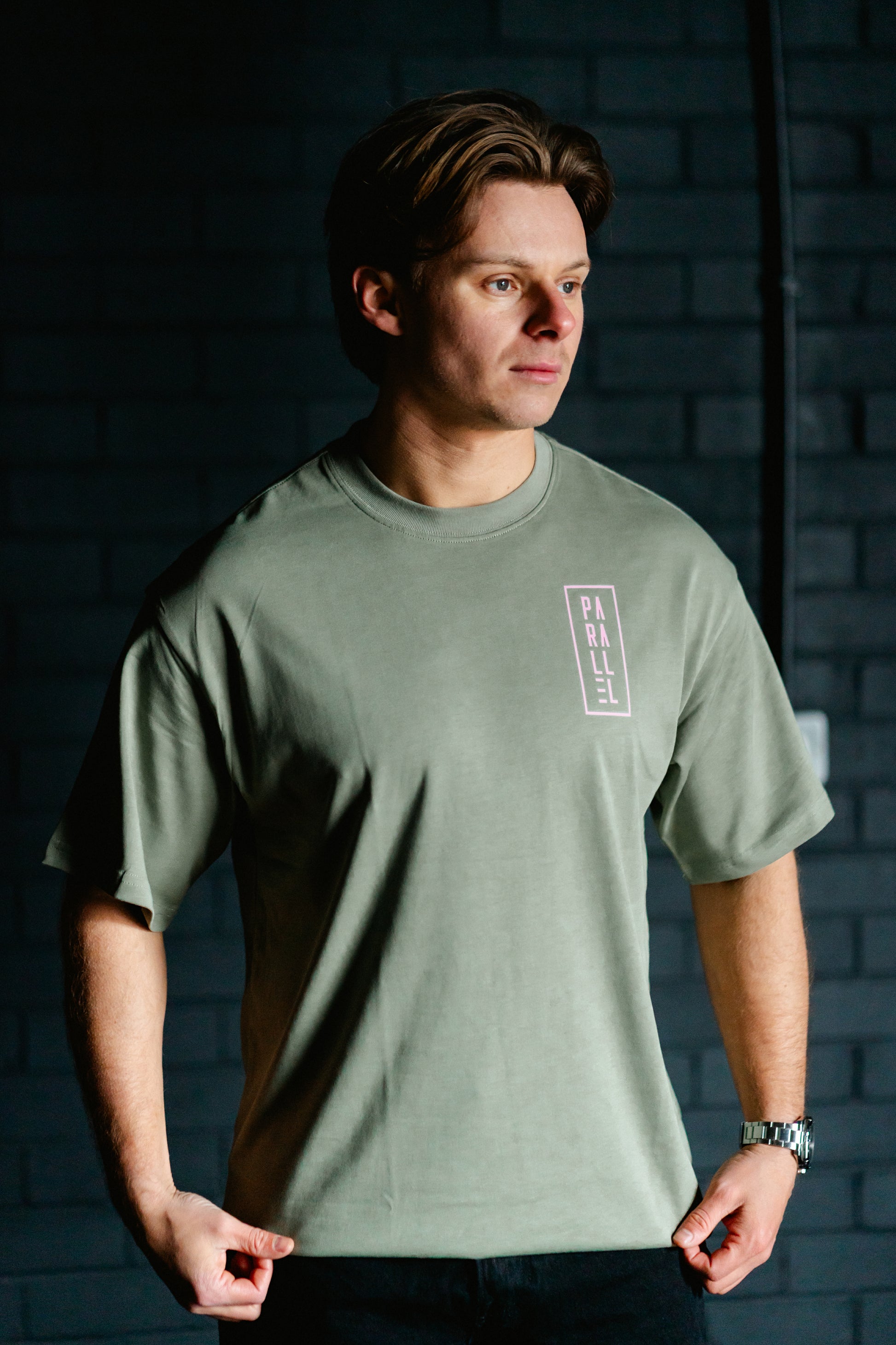 The ‘Parallel Logo’ Tee pays tribute to our very first T-shirt, carrying the same iconic logo with an improved, modern fit. Designed with an oversized silhouette and extended sleeves, this sage piece stands out with a crisp pink Logo across the chest and a bold parallel symbol graphic on the back. Crafted from heavyweight cotton, it delivers a durable, premium feel.